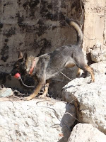 Domingo voltámos aos escombros na companhia do Rui. Neste treino decidimos treinar pin-point, fazendo 2 blinds para cada, em interiores. A Inca portou-se bem, a S. teve alguma dificuldade com 1 loop, o que signfica que vai ter elevadas doses de pin-point nos próximos treinos até a marcação estar fixada como super-cola-3. O Vortex esteve bem em 3 delayeds com estimulação e com a marcação mais na "ponta da língua". O Ben jogou à bola e a Guay, ainda em treino específico, fez adaptação a superfícies instáves. Agradável surpresa do treino foi um "test-drive" do Vortex em escombros que incluiu o escuro, escadas metálicas sem espelho e em caracol (fónix!), alturas, gestão de obstáculos em cimento armado com bué de ferro e finalmente superfície instável e escorregadia, com nota máxima a tudo e a deixar o J. e a Pipa de boca aberta e cheios de inveja.